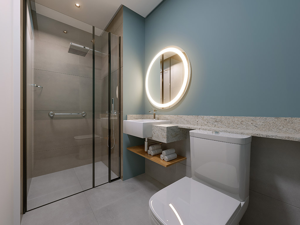 Os Quartos Standard Adaptados com 1 cama de casal são ideais para pessoas com mobilidade reduzida. Contam com wi-fi grátis, ar condicionado, banheiro adaptado com barras de apoio, assento para banho e ducha higiênica.