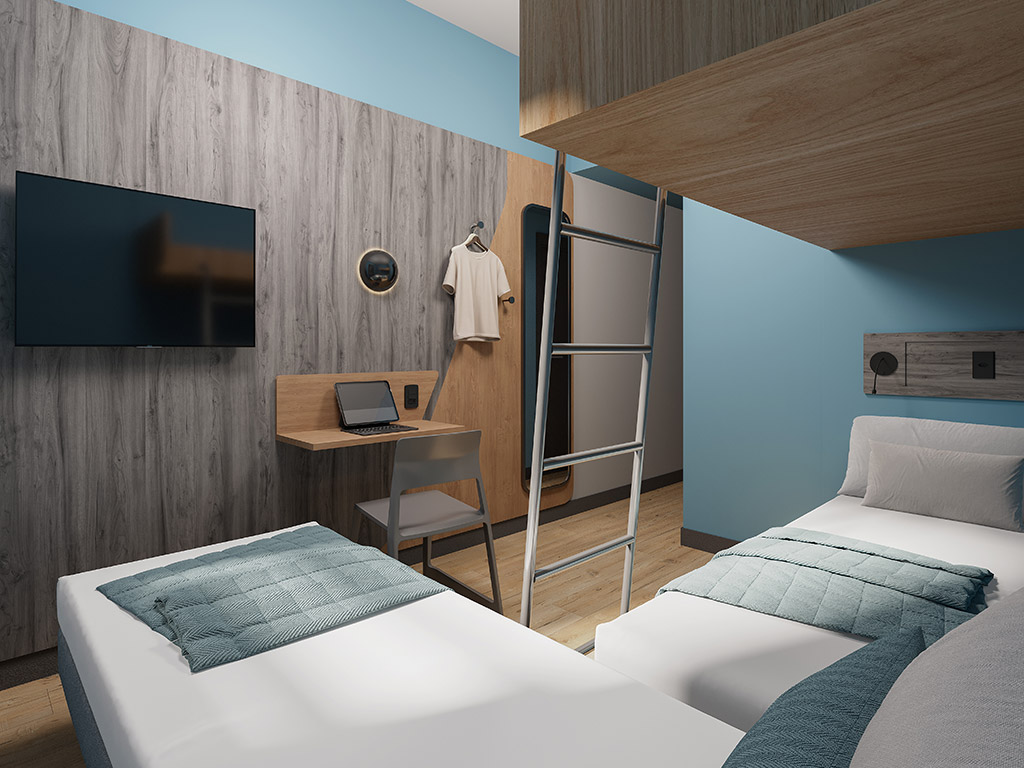 Após um dia cansativo, as acomodações práticas e confortáveis do Quarto Standard com 2 camas beliche, são a melhor opção para relaxer. Os quartos contam com acesso wi-fi grátis, ar condicionado e Smart TV.